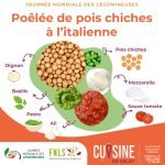 Énergétique, riche en fibres, bon pour le transit, la satiété et la santé cardiovasculaire, le pois chiche coche toutes les cases. Proposée cette année dans une poêlée gourmande à l’italienne avec tomate, basilic, mozzarella, pesto, cette recette est née d’un travail collectif des équipes de Cuisine en Velay.